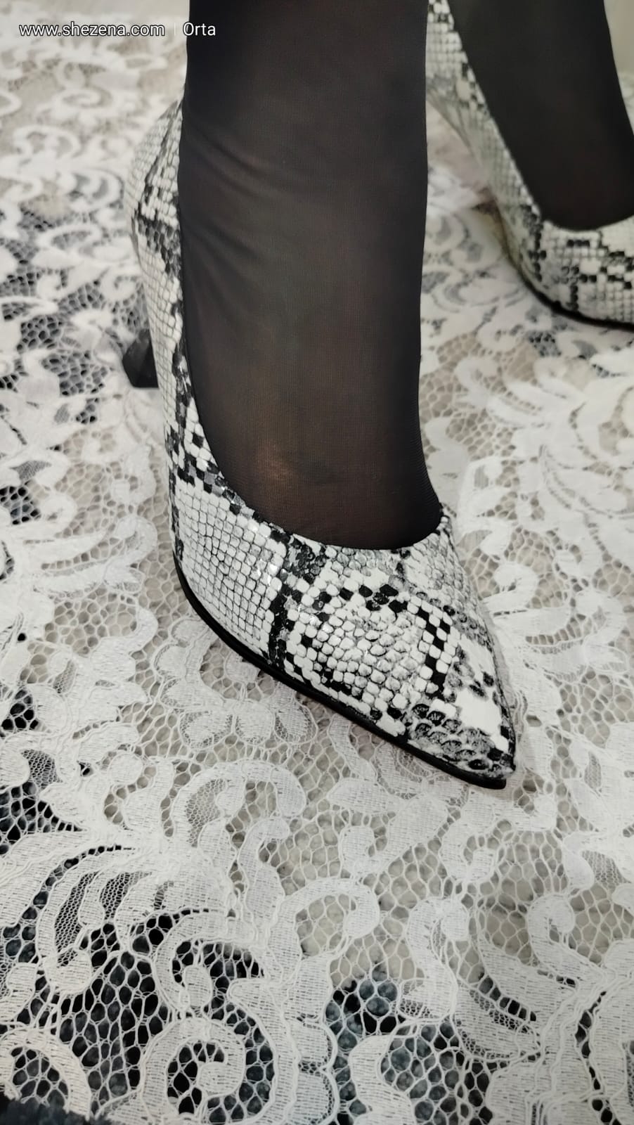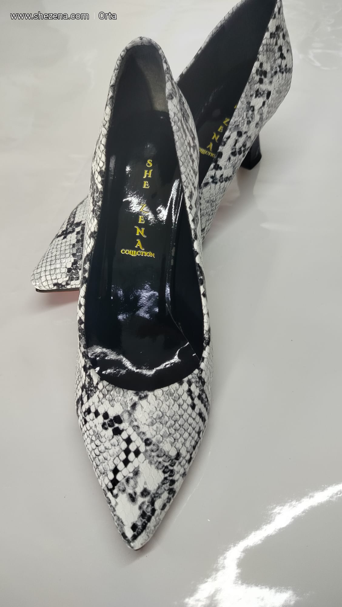 Beyaz Yılan Desenli Ayakkabı