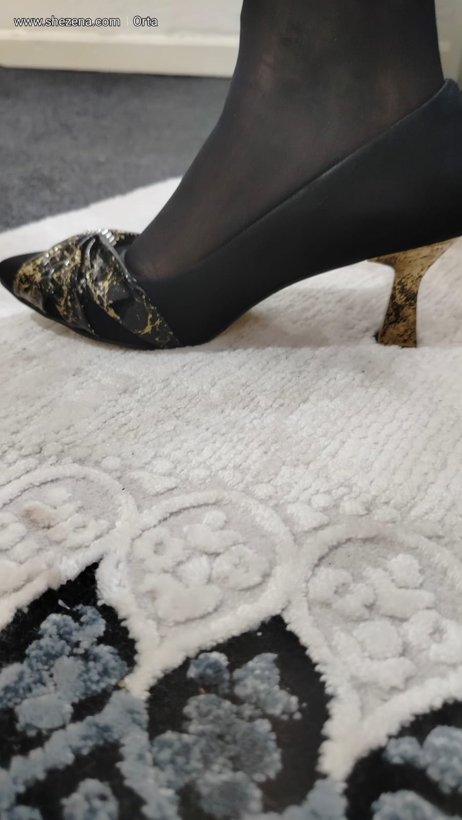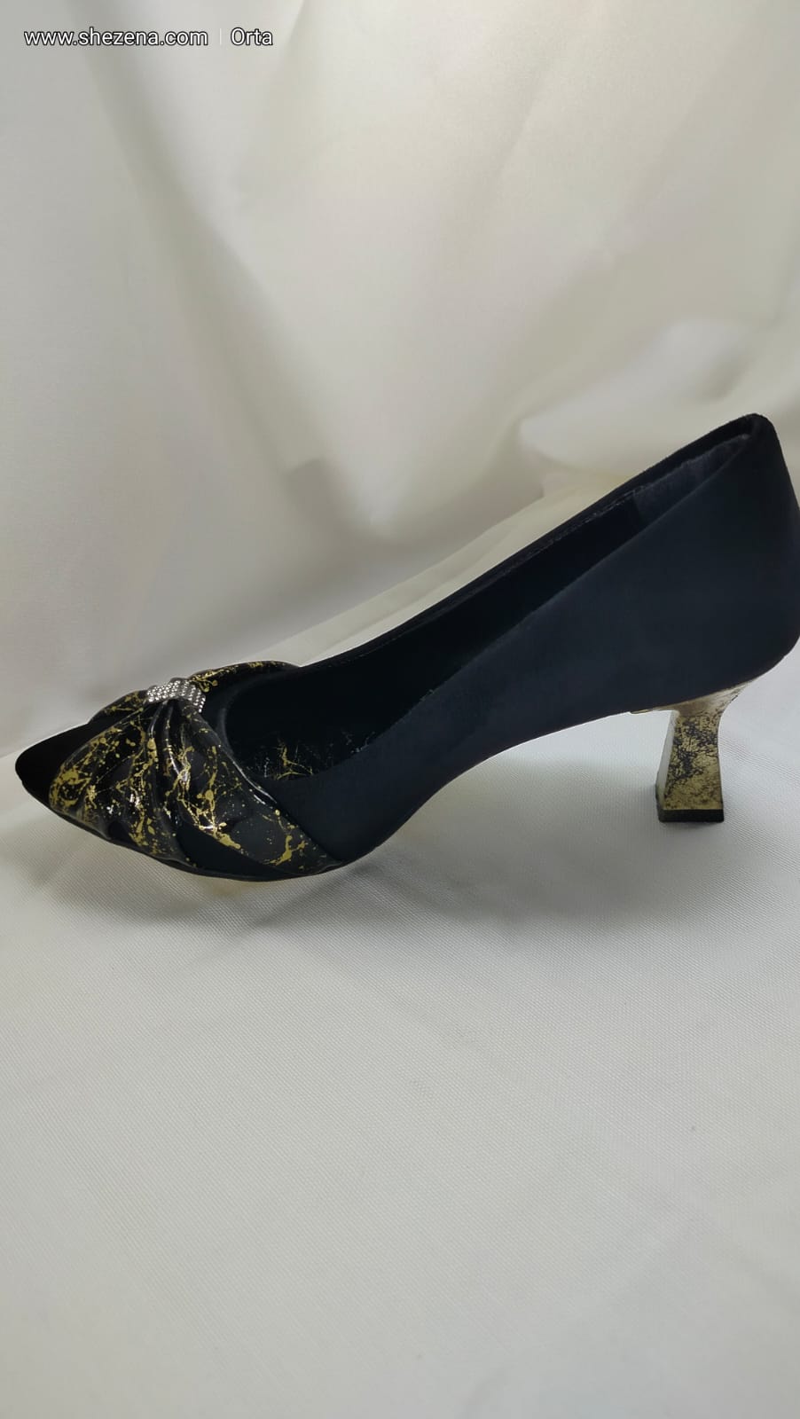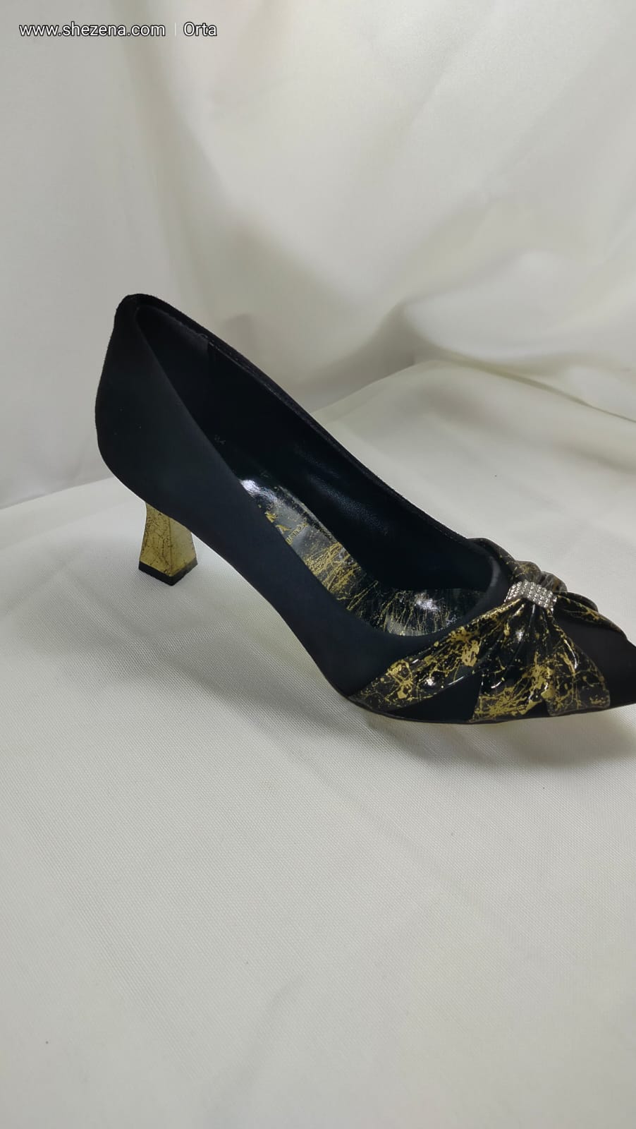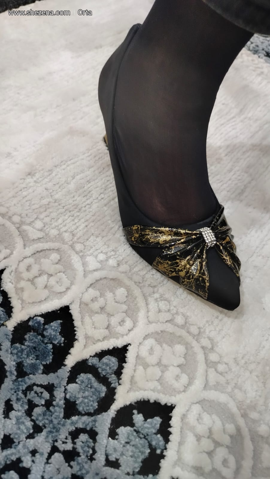 siyah süet üzeri altın desenli siyahrugan fiyonk ayakkabı