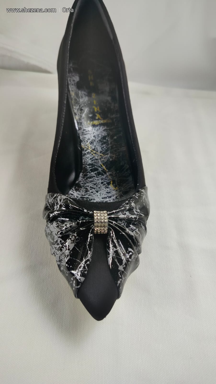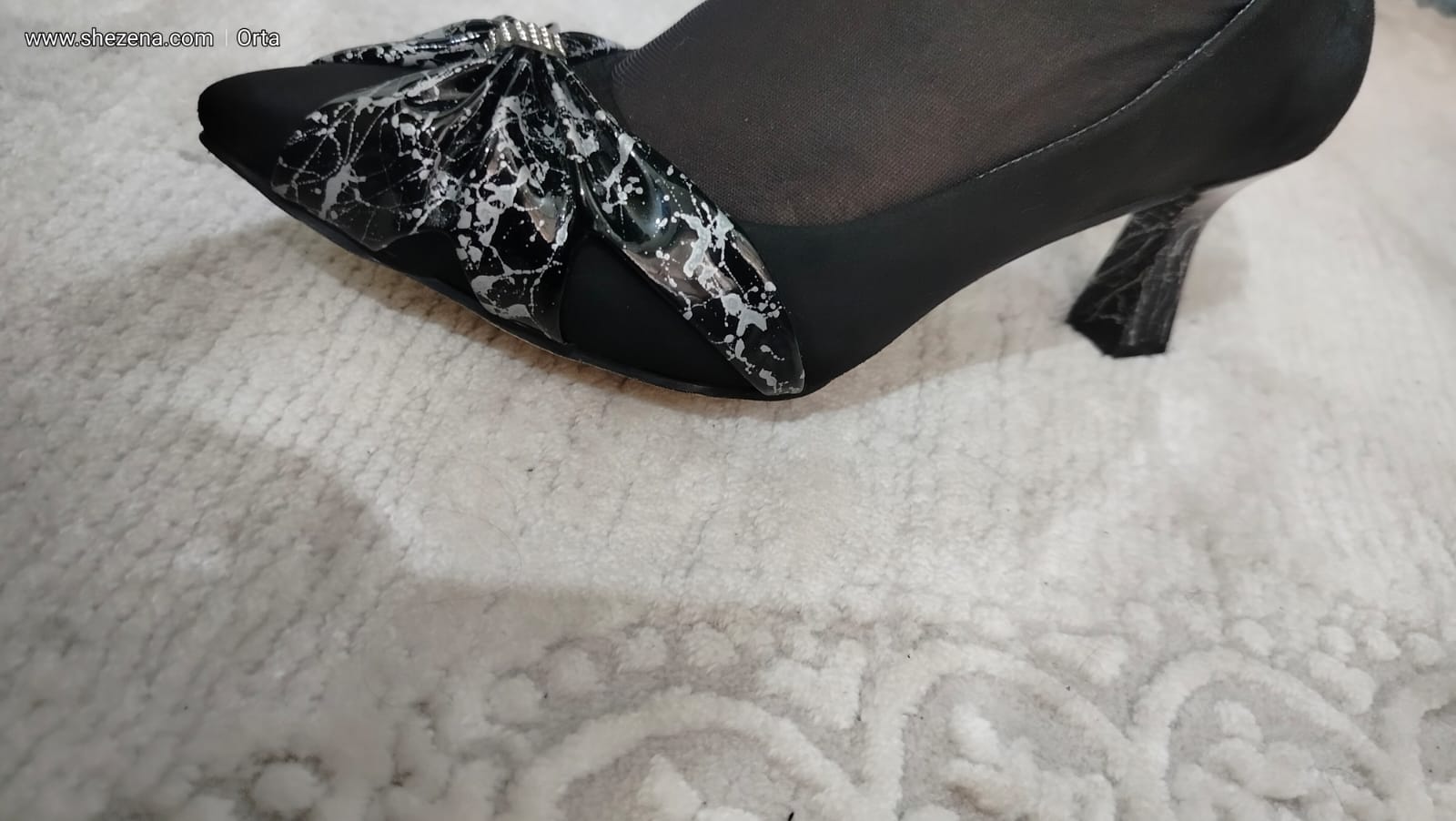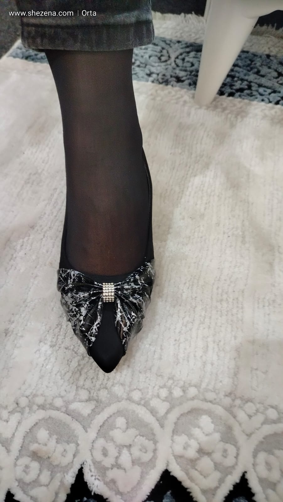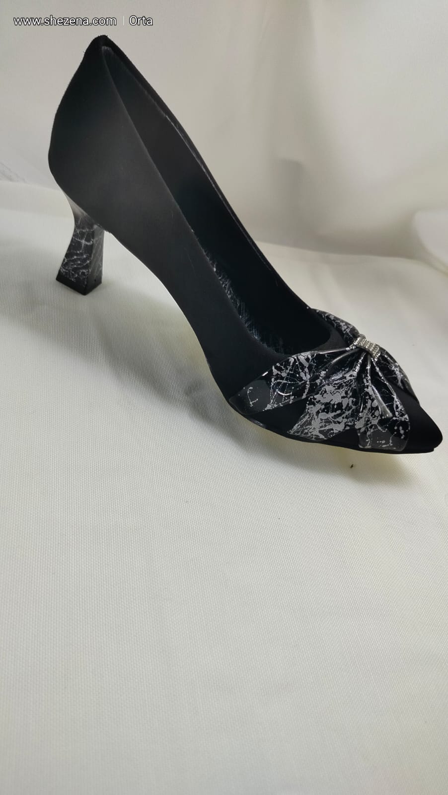 Siyah Süet Üzeri Gümüş Desenli Siyah Rugan Fiyonk Ayakkabı